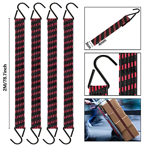 Elastici con Ganci, 2M Corde Elastiche con Gancio Tenditori per Bagagli, Set di 4 Extra forti Estensibili Cavi Elastici con Ganci Universali per Giardinaggio, Trasporto, Bicicletta, larghezza 30mm
