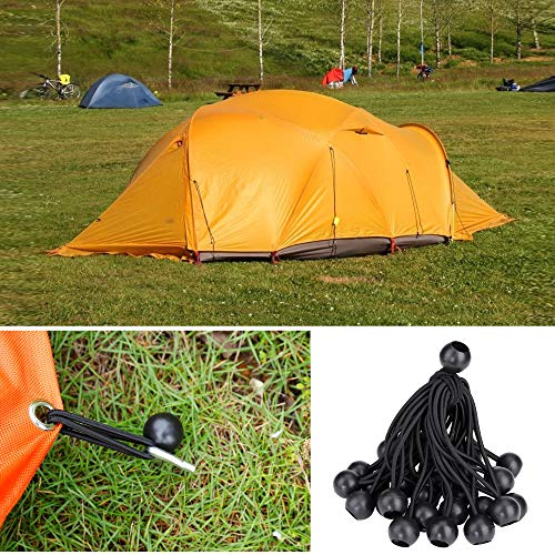 Elastici con sfera 30 Pezzi Supporto Elastico di Fissaggio Bungee Ball per Lssaggio Fissaggio di Tende, Cavi, Padiglioni, Cartelli, Tende, Campeggio, Roulotte (Nero)