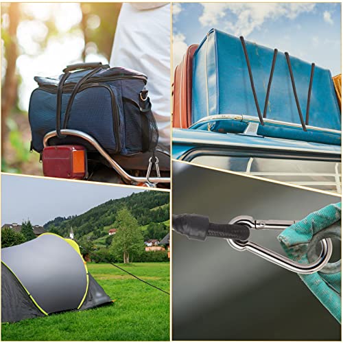 I moschettone su entrambe le estremità dell'elastico possono essere facilmente collegati,il che è più conveniente della anello di tensione in gomma,lunghezza 100cm,diametro 8 mm,eccellente effetto di fissaggio.