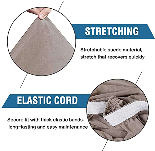Elastico Impermeabile Coprisedie Sala da Pranzo, Elastico Pelle Scamosciata Tessuto Lavabile Estraibile Coprisedia con Schienale Coprisedili, Coprisedie per Cucina Alberghi-Taupe-2 Pezzi