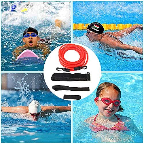 Elastico Nuoto Piscina, XiXiRan Cintura Nuoto, Cinghia per Nuoto, Nuoto Corda Allenamento Elastica, Cintura da Nuoto Regolabile, per Bambini /Professionisti /Dilettanti, (4M, Rosso)