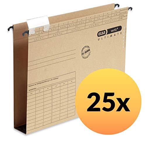 Elba 85484 - Cartella sospesa Vertic Ultimate, con apertura laterale, dotata di base in cartoncino resistente, per 380 fogli in formato A4, 25 pezzi, colore marrone naturale