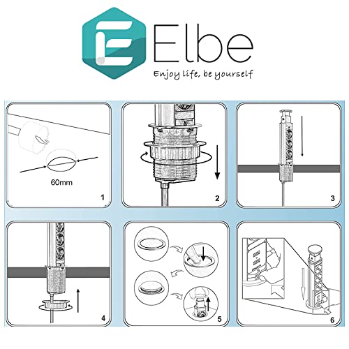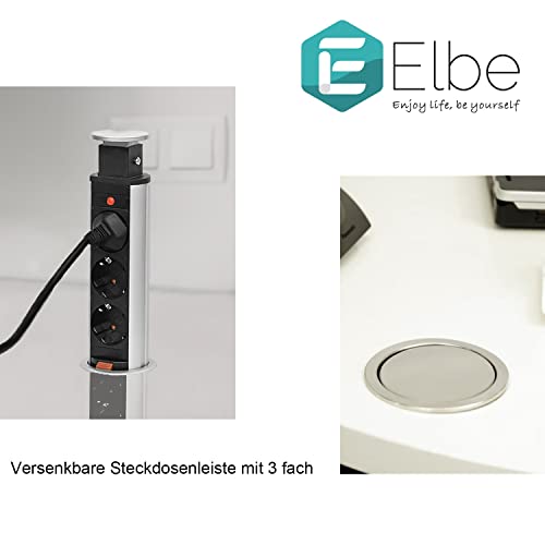 Elbe Inno Multipresa da scrivania a scomparsa, torretta a scomparsa con 3 Prese Schuko, colonnina multipresa da tavolo, Presa multipla da incasso Ideale per Ufficio, Cucina, piani di lavoro Diametro 60mm