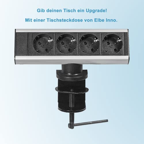Elbe Inno Multipresa da Scrivania/Tavolo, presa multipla con 4 Prese Tedesche, multiprese con supporto per fissaggio alla Scrivania, Spina Tedesca, cavo 1.5m. Ideale per Ufficio Sala Riunioni EL10204