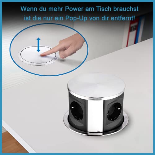 Elbe Inno presa da tavolo a scomparsa 4 vie, multipresa 4 vie con copertura in acciaio inox, presa da incasso, presa multipla, con cavo di collegamento 1,5 m, per ufficio, lavoro e cucina