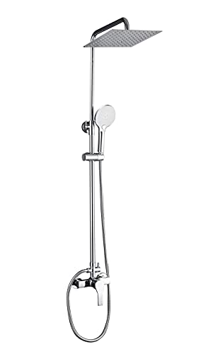 Elbe Sistema doccia inox 304 con miscelatore, doccia a pioggia, colonna doccia con raccordo doccia, soffione angolare 25x25cm, set doccia, cromato