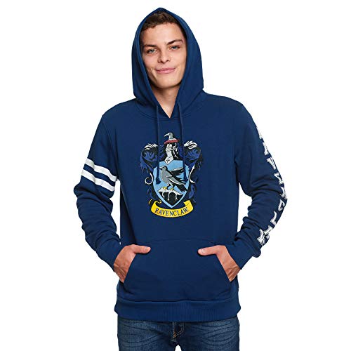 Elbenwald Harry Potter Hoodie Corvonclaw Coat of Arms Print e Stampa a Manica con Cappuccio e Borsa per Uomini Blu - XS