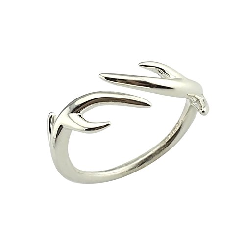 ELBLUVF, anello regolabile in argento 925 a forma di corna di cervo, 2,2 g