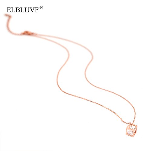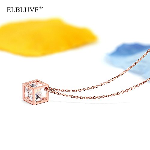 ELBLUVF lega placcata in oro rosa 8 mm cubo quadrato CZ felicità collana Everyday Jewelry Gift
