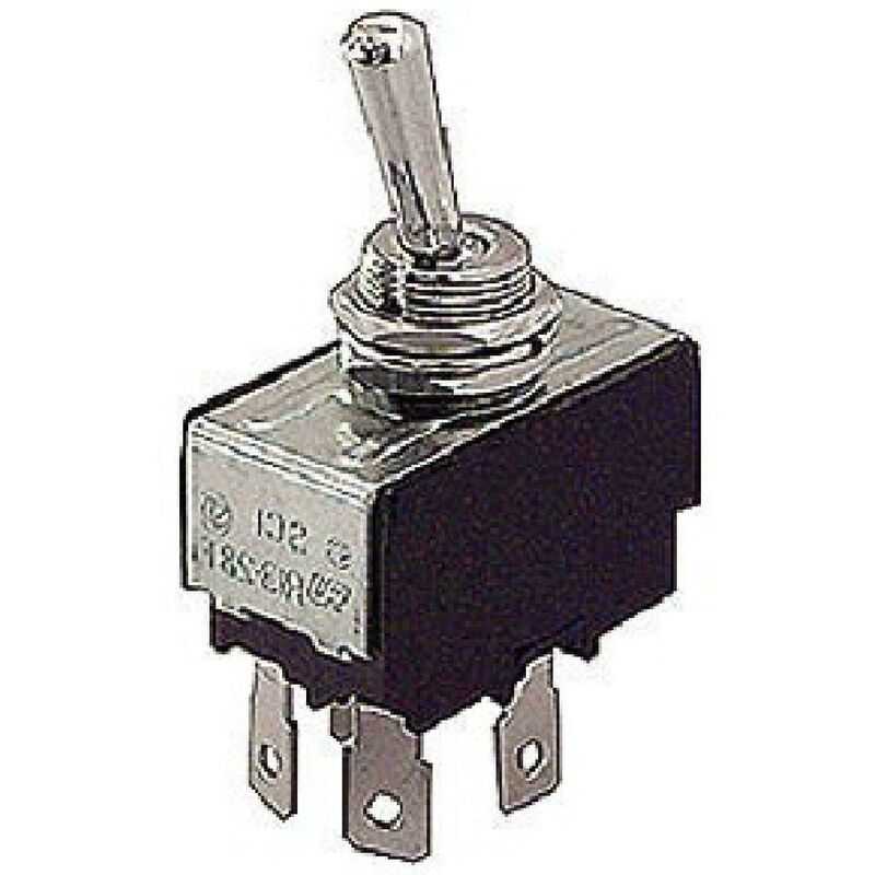INTERRUTTORE BIPOLARE A LEVA 10 A Interruttore bipolare a levetta, corpo in resina fenolica, leva in ottone nichelato, contatti in argento, terminali faston 6,35 PORTATA:10 A - 250 V o 15 A - 125 V CORPO:resina fenolica LEVA:ottone nichelato CONTATTI:argento TERMIN.:a vite - faston 6,35 PER FASTON:04/11520-00 COPRIFASTON:04/11530-00 CAPPUCCIO PVC: 04/6710-00