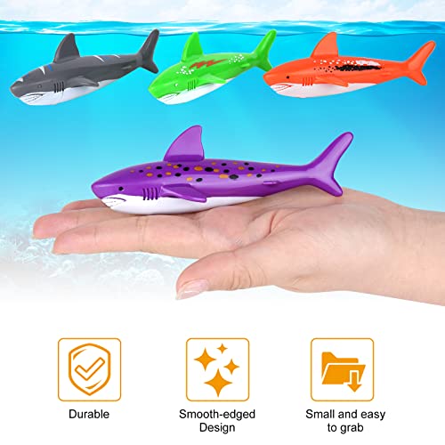 Il set di giocattoli per immersioni da nuoto include: 4 anelli da immersione, 4 squali da immersione, 8 gemme per immersioni in vita marina