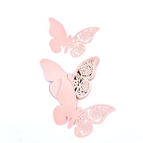 ElecMotive 100 Pezzi Farfalle 3D Segnaposto Farete Misura Grande Adesiv da Parete Casa Deco Rosa