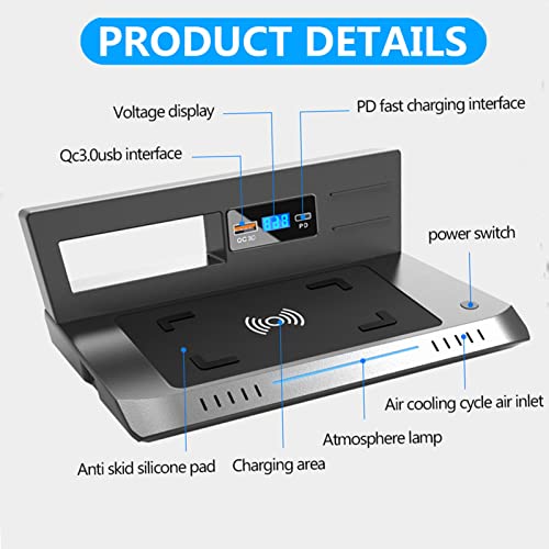 【Ricarica rapida, protezioni multiple】: il caricabatterie wireless per auto è dotato del sistema sviluppato in modo indipendente, una ventola a vortice silenziosa genera un flusso d'aria e fornisce contemporaneamente 2 canali d'aria per raffreddare i componenti interni del trasmettitore di ricarica wireless e la bobina di ricezione della ricarica wireless del telefono.