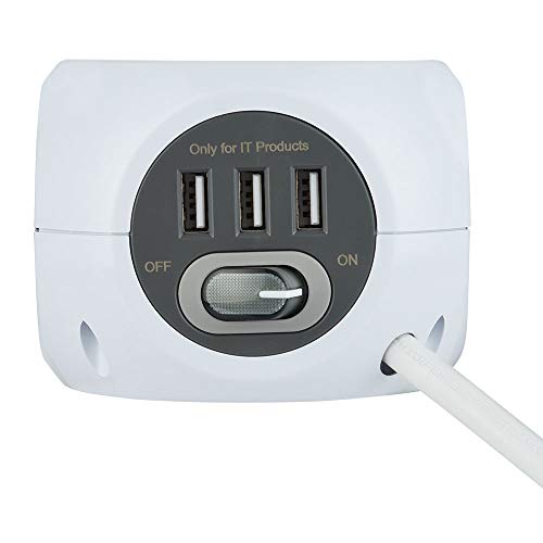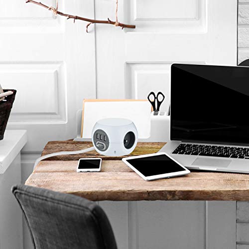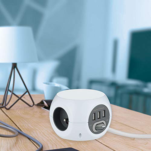 Electraline 35443 Mini Cube con 3 porte USB 2.4A, blocco 3 prese con interruttore, prolunga multipresa 3M, bianco