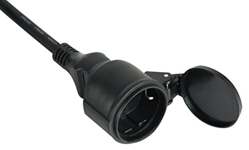 Electraline 46152 Prolunga Splitter Caravan a 3 vie/Cavo Alimentazione, con 2 Prese Schuko + 1 Industriale CEE, Spina CEE per uso esterno IP44, Cavo in gomma H07RN-F 3G1.5mm, Lunghezza 1.5M, nero