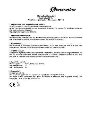 Electraline 58104 Mini Programmatore Timer, 16 A, Nero/Bianco, Presa 10/16A