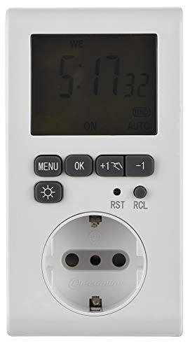 Electraline 58117 Programmatore Digitale Professionale, Schermo LCD Retroilluminato, Spina Italiana Piccola 10A, Presa Schuko + 10A, Bianco