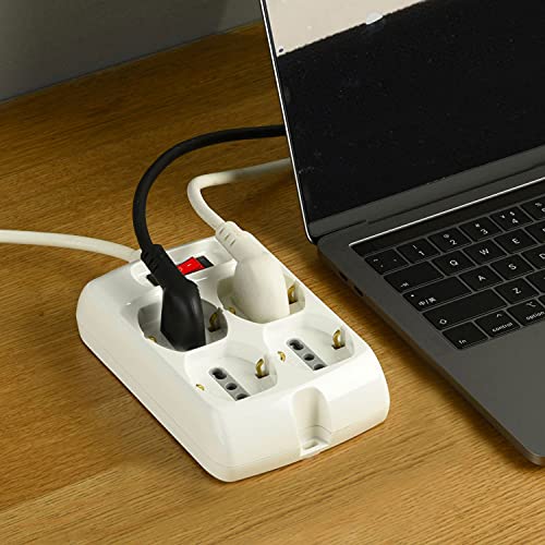 Electraline 61990 Multipresa Quadrata 4 Posti Polivalenti Schuko + 10/16A con Interruttore ON/OFF Luminoso, Spina Grande Italiana 16A, Cavo Lunghezza 1.5 M