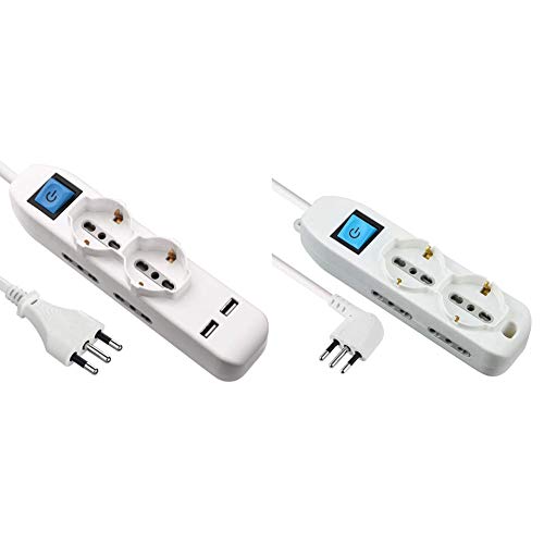 Electraline 62087 Multipresa 6 Posti 2 Polivalenti (Schuko 4 Bivalenti (10/16A) 2 Prese Usb-Cavo 1,5 M Bianco & 62001 Multipresa 6 Posti 2 Schuko E 4 Bivalenti 10/16A, Cavo Ho5 Vv-F