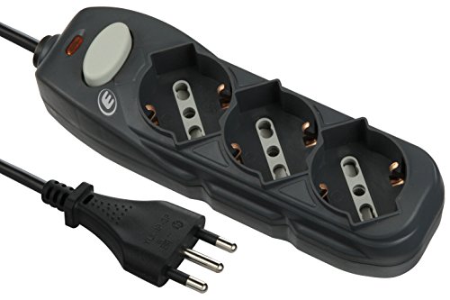 Electraline 62091 Multipresa tripla 3 posti polivalenti (schuko + 10/16A) con interruttore - cavo 3 m nero