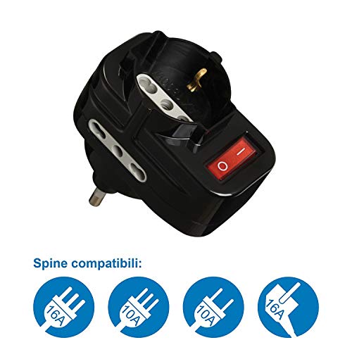 Adattatore con interruttore 1p schuko/italia 10/16a