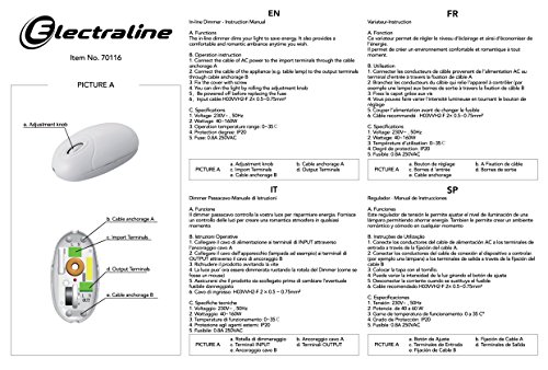 Electraline 70116 Interruttore Varialuce Dimmer Passacavo per lampade-lampadari-bajour, max 160W, Bianco, 160 W, 250 V, Small