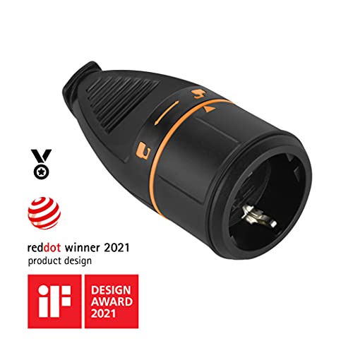 Presa cablabile Schuko Electralock dotata di un meccanismo di blocco brevettato che una volta azionato (ruotando la ghiera) permette di lavorare in maniera agile e confortevole impedendo disconnessioni accidentali dell'apparecchio collegato durante il suo utilizzo;