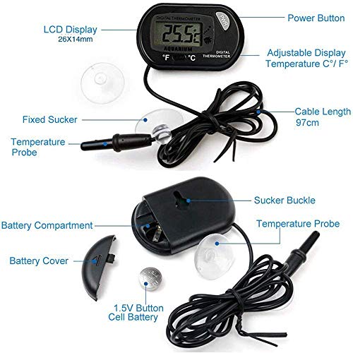 Electrely 2Pack Acquario Termometro Digitale Esterno Sonda per Acquario -50/70°C e 1Pack Vetro Galleggiante Acquario Termometro con Ventosa