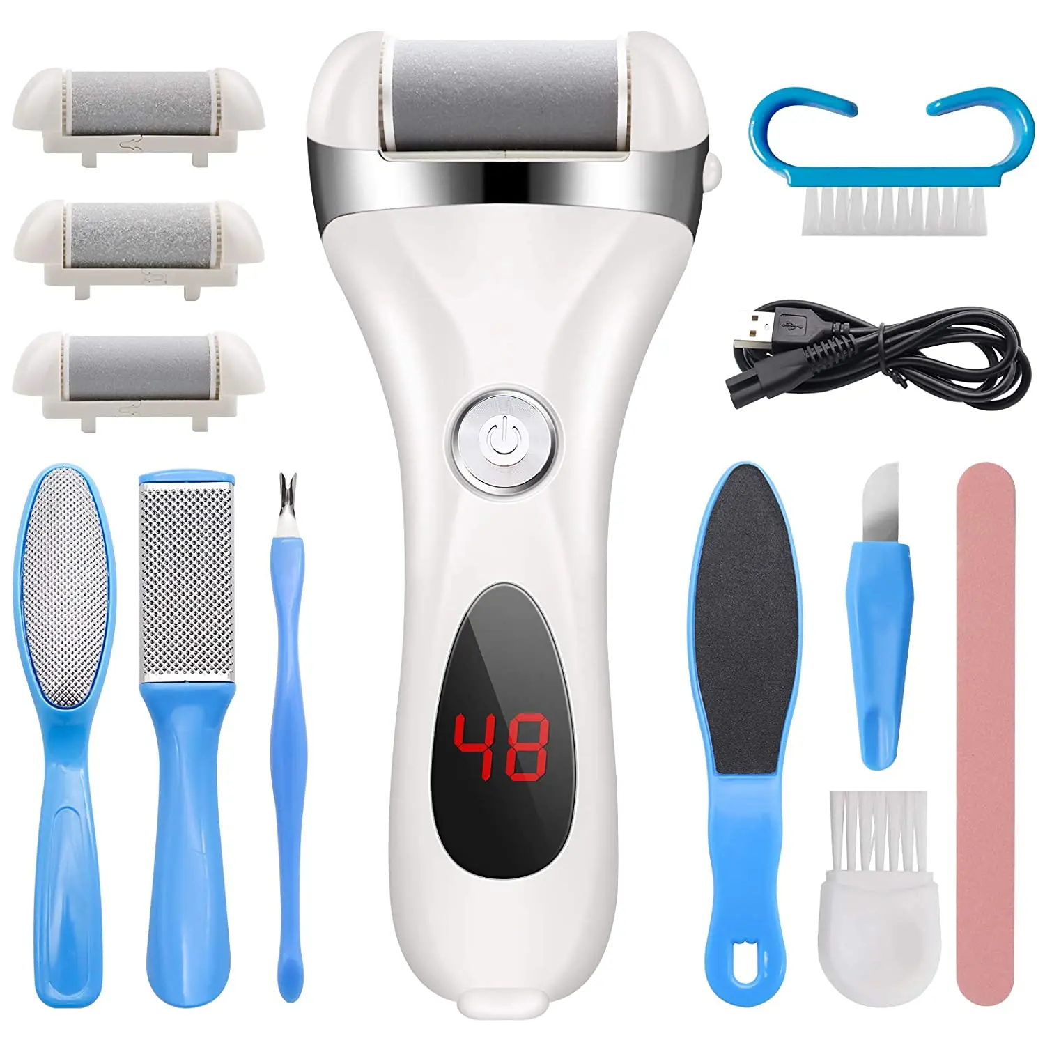 Electric Foot Callus Remover, 13-in-1 Rechargeable, Professional Foot Pedicure Kit, Waterproof Hard Skin Remover white