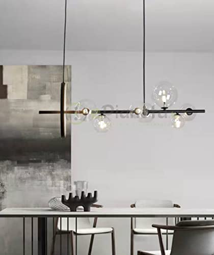 TOT ELECTRIC Lampadario a sospensione 7 sfere G9 bolle trasparenti in vetro luce con cerchio da soffitto nero argento design moderno (Nero)