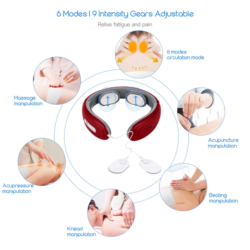 3D Electric Pulse Neck Back Kneading Massager with Electrode Pads For Pain Relief Relaxation Battery Powered Health Care Machine