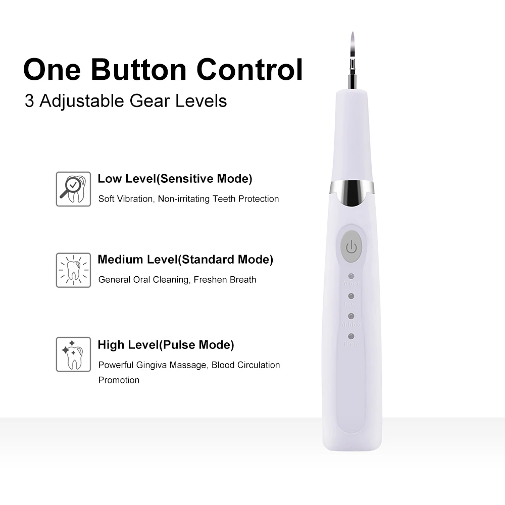 Electric Tooth Calculus Remover High Frequency Ultrasonic Vibration Tooth Stains Tartar Teeth Dental Cleaning Oral Hygiene Tool