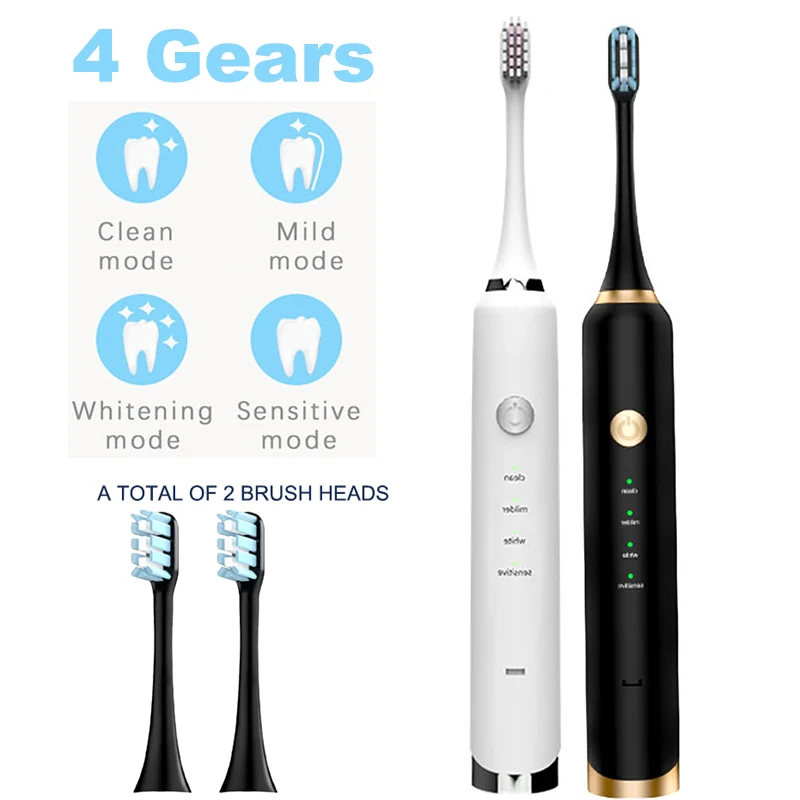 Electric Toothbrush Rechargeable Ultrasonic Automatic Smart Toothbrush with 2 Replacement Brush Heads 12 Models 45000time/min