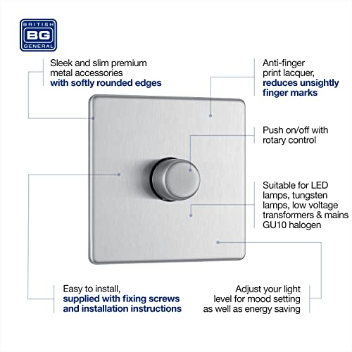 BG Electrical FBS81P-01 - Interruttore singolo dimmer senza viti, in acciaio spazzolato, 2 vie, 400 W
