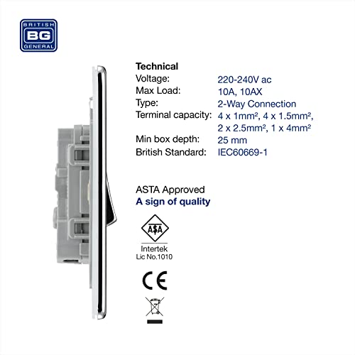 BG Electrical, interruttore della luce bipolare Pearl Nickle Polished Chrome