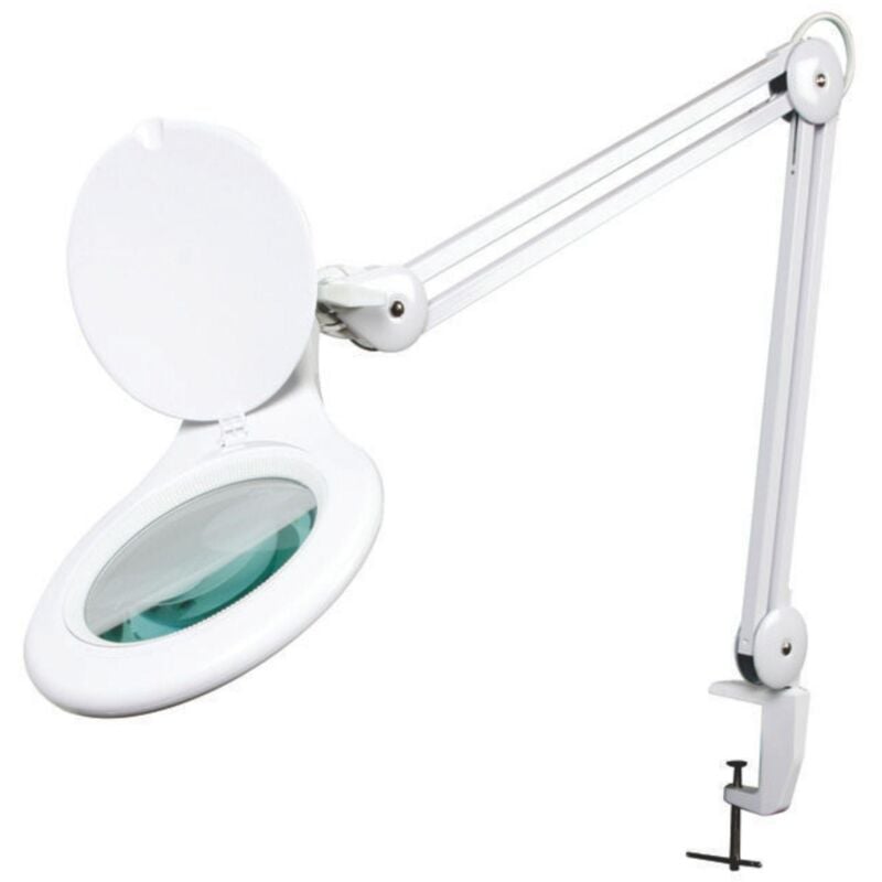 This magnifying lamp is an aid for all kinds of precision applications at home as well as at work. It comes with a 5-dioptre lens (magnification 2.25 x). A well-balanced, universally jointed arm provides maximum adjustment possibilities. Powerful light is provided by 48 white LEDs that encircle the glass.Very low powerconsumption ;