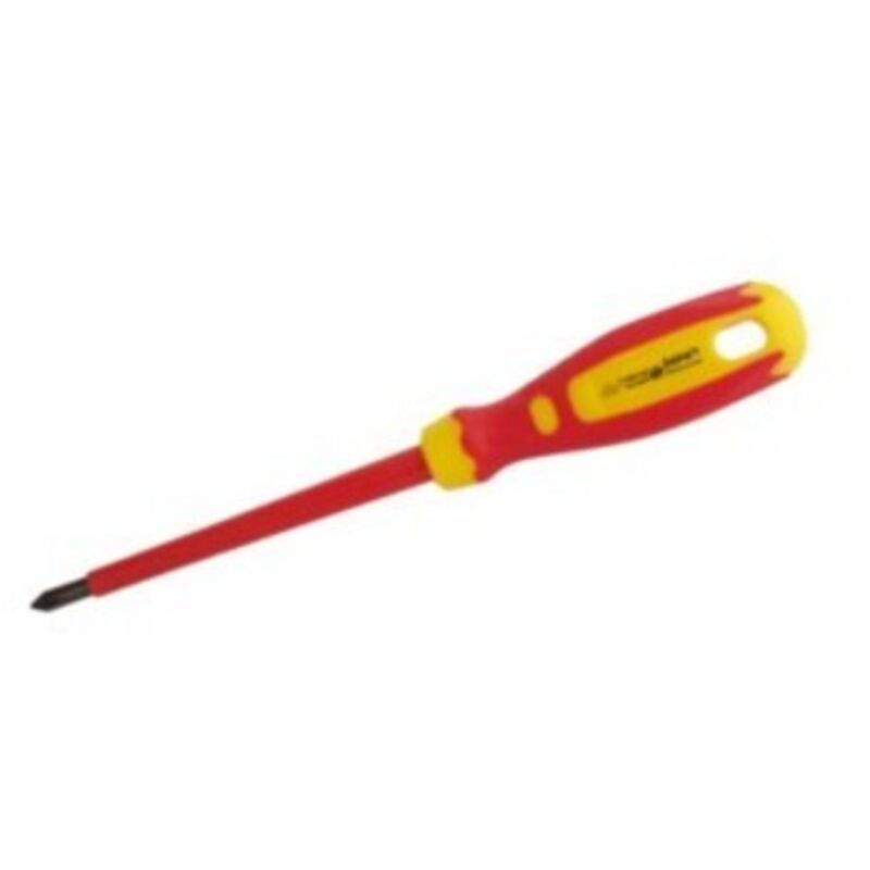 SPECIFICHE TECNICHE: Cacciavite isolato PUNTA PHILIPS. Acciaio al nichel-cromo-vanadio-molibdeno. VDE - 1000V DIN 7437 7438 - EN 60900. Maniglia: PP/TPR. Ergonomico. Peso 34 g Tipo n. 1 Diametro punta 5 mm l Lunghezza della punta 100 mm Lunghezza totale 192 mm Presentazione con gancio di plastica per l'esposizione Mango diametro 27 mm Mango lunghezza 92 mm