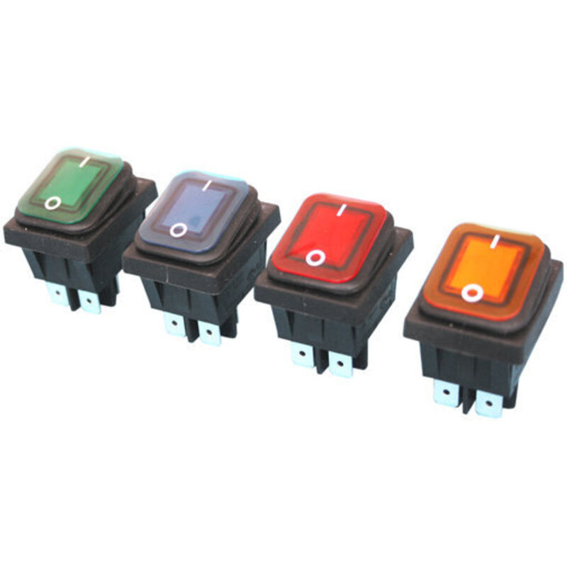 Interruttore bipolare con protezione IP54 Colore della chiave VERDE 2 posizioni ON-OFF Morsetti Faston 635mm 125° C Intensità 16A/250V Protezione IP54 Foro di montaggio: Dimensioni (pannello 0,75-1,25 mm) 30×22 mm Dimensioni (pannello 1'25-2 mm) 30'2×22 mm Dimensioni (pannello 2-3 mm) 30'5× 22 mm