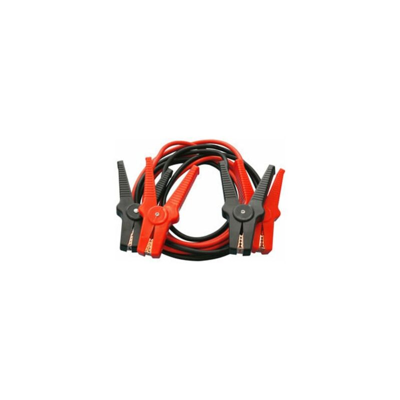 Cavi di emergenza per l'avviamento di motori automobilistici. 12 VDC - 500 Amp CARATTERISTICHE TECNICHE: Con due morsetti rossi (+) e due neri (-) isolati ad alta pressione. Cavo con sezione di 10 mm² e lunghezza di 2,5 m. Fornito in un sacchetto con chiusura a zip Ideale per essere riposto nel bagagliaio