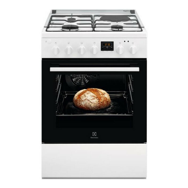 Electrolux LKM624011W Cucina mista comprensiva di forno elettrico multifunzionale catalitico e piano cottura con 1 piastra e 3 fuochi di cui 1 rapido 3 kW. Prestazioni versatili: per accompagnarti nelle tue avventure culinarie, questa cucina dispone di un piano cottura che combina gas ed elettricità e di un forno elettrico multifunzione. Un forno che ti aiuta a pulirlo: questo forno ti aiuta davvero a pulirlo. La cavità ha un rivestimento catalitico che assorbe e ossida il grasso, per una facile pulizia Una porta a tutto vetro, facile da pulire: I vetri della porta del forno sono facili da pulire. L'anta e i vetri sono removibili senza attrezzi e consentono di pulirli in un batter d'occhio Accensione elettronica del piano: Ruotare la manopola, premere il pulsante. Il tuo piano di cottura è ora pronto e puoi cucinare. Tempo ogni piatto per il massimo del sapore: imposta il timer e ti avviserà quando i piatti sono pronti. Perché un minuto può fare la differenza quando si tratta di