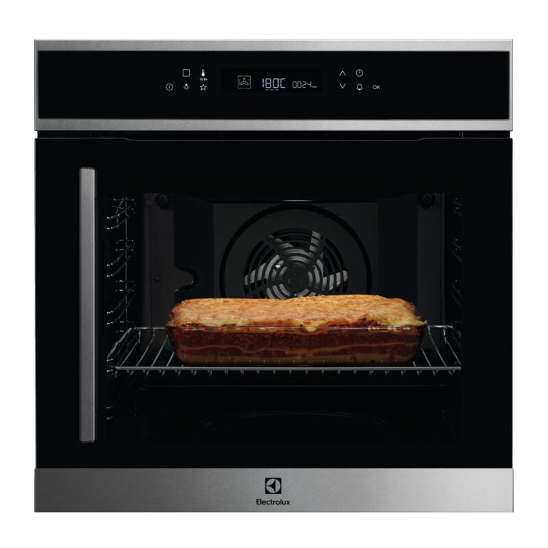 Grazie al forno multifunzione integrato Electrolux serie 600 SurroundCook® EOF7P00RX, i tuoi polli arrosto o meringhe sono cotti in modo uniforme. Il forno assicura che la temperatura interna sia regolare grazie all'aria calda pulsata Schermo LCD e tasti sensibili per un maggiore comfort: L'interfaccia sensibile mette il timer, le modalità di cottura e la temperatura a portata di mano. Avrai accesso a ricette pre-programmate per semplificarti la vita.Anche cucinare su più livelli: goditi una cucina omogenea su più livelli. La resistenza ad anello aggiuntiva consente di cuocere in modo uniforme su più livelli contemporaneamente, indipendentemente dalla quantità contenuta.Risparmia tempo con la funzione Fast Preheat: Niente più attese o perdite di tempo con la funzione Fast preriscaldamento e il suo tempo di cottura. Preriscaldamento accorciato rispetto a uno standard Un sistema autopulente per una lucentezza permanente: mantieni il tuo forno naturalmente pulito grazie alla funzione di