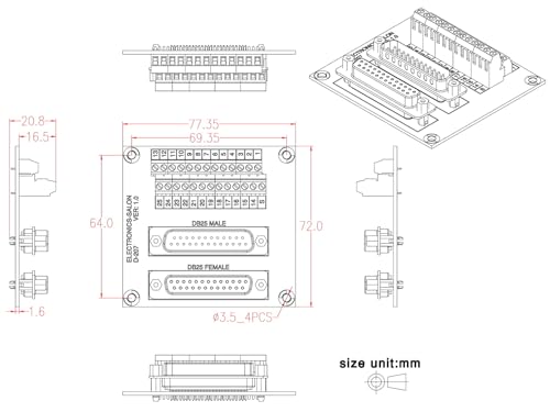 Electronics-Salon D-Sub DB25 maschio/femmina Header Scheda Breakout, Blocco terminale, connettore.