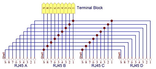 Electronics-Salon RJ45 8P8 C jack 4-way Buss Breakout Board, morsettiera, connettore.
