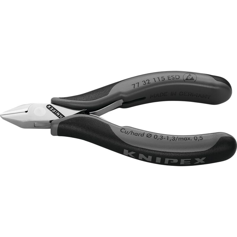 Finitura a specchio, quindi nessun problema nel circuito di commutazione dovuto a parti cromatiche che si sfaldano. Cerniera stabile, passante e senza gioco. Doppia molla priva di attrito per un'apertura dolce e uniforme. Manici neri/grigi a più componenti, in materiale antistatico. Idoneo ESD. Uso: Per lavori che richiedono tagli precisi, ad es. nell'elettronica e nella meccanica di precisione. Norma: DIN ISO 9654 Materiale: Acciaio per cuscinetto a sfere, taglienti temprati a induzione. Dati tecnici Sfaccettatura Testimone fine Materiale Acciaio per cuscinetto a sfere Forma della testa a punta Proprietà elettrostatiche EGB/ESD Superficie finitura a specchio Impugnatura Rivestimento in multicomponente Attributo del nome del prodotto FW Norma DIN ISO 9654 Processo di produzione Taglienti temprati a induzione (ca. 62 HRC) Tipo di prodotto Pinza tagliente Lunghezza complessiva, mm 115 Capacità di taglio filo duro fino a ⌀, mm 0,3 - 0,5 Capacità di taglio filo di rame fino a ⌀, mm 0,3