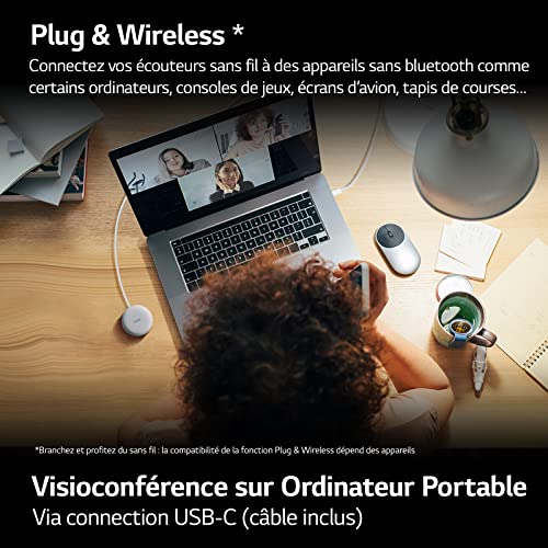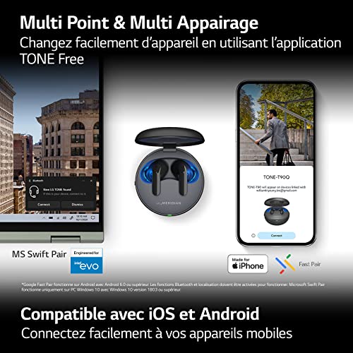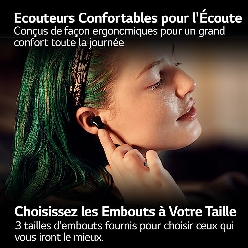 LG Electronics TONE Free Dt90Q Auricolari Bluetooth In-Ear con Dolby Atmos, Tecnologia Meridian, Cancellazione Attiva del Rumore ANC, e Igienizzazione Uvnano+, Bianco