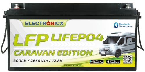 Electronicx LiFePO4 Caravan Edition Batteria 200Ah 12,8V alimentazione 2650 Wh con funzione Bluetooth Batteria al litio ferro fosfato inclusa App BMS