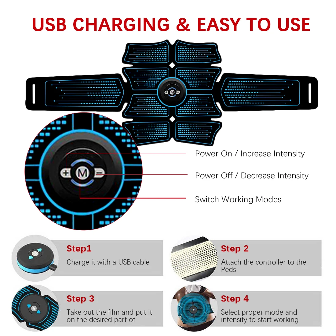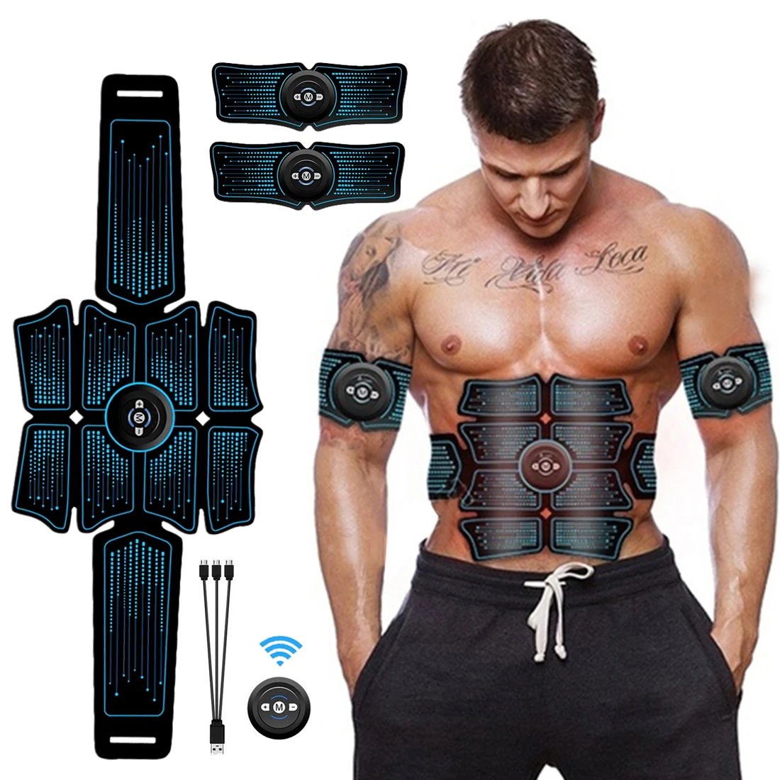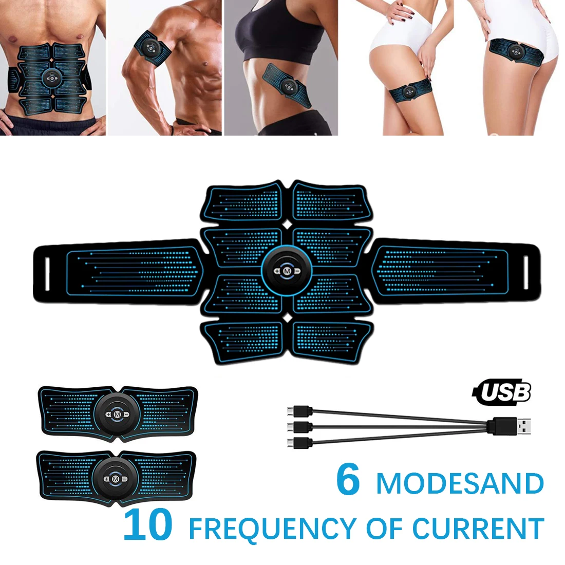Electrostimulation Muscle Stimulator EMS Abdominal Vibrating Belt ABS Muscular Hip Trainer Massage Equipment 50Pcs Gel Pads
