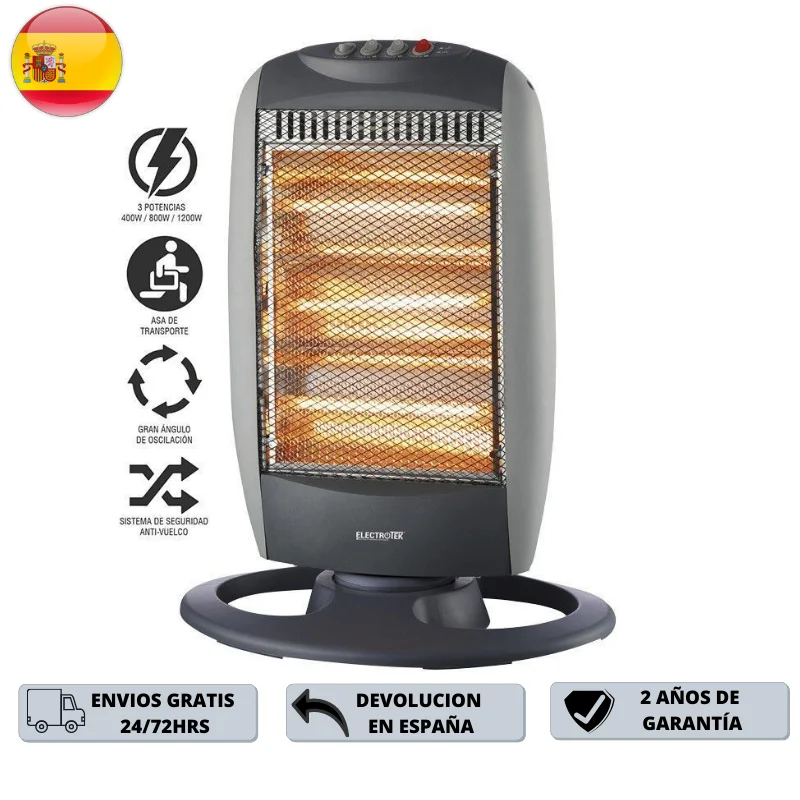 Electrotek electric heater halogen ET-EH1206 3 power levels anti-fly safety system handles to carry