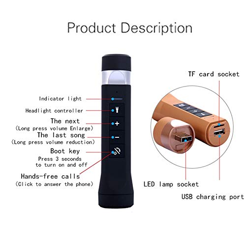 ELECTSHONG Ciclismo multifunzione Torch Bluetooth Speaker Music Player MP3 + Caricabatterie Power Bank + Torcia + Radio FM