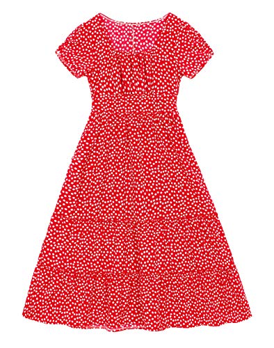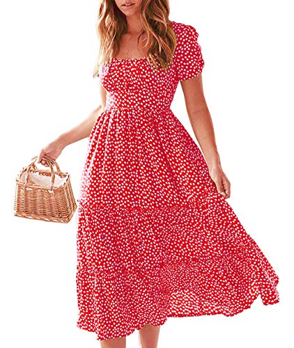 Eledobby Vestito Floreale da Donna Boho Scollo Quadrato Manica Corta Abito Midi Donne Vestiti Lungo Casual Signore Abbigliamento Elegante Rosso S